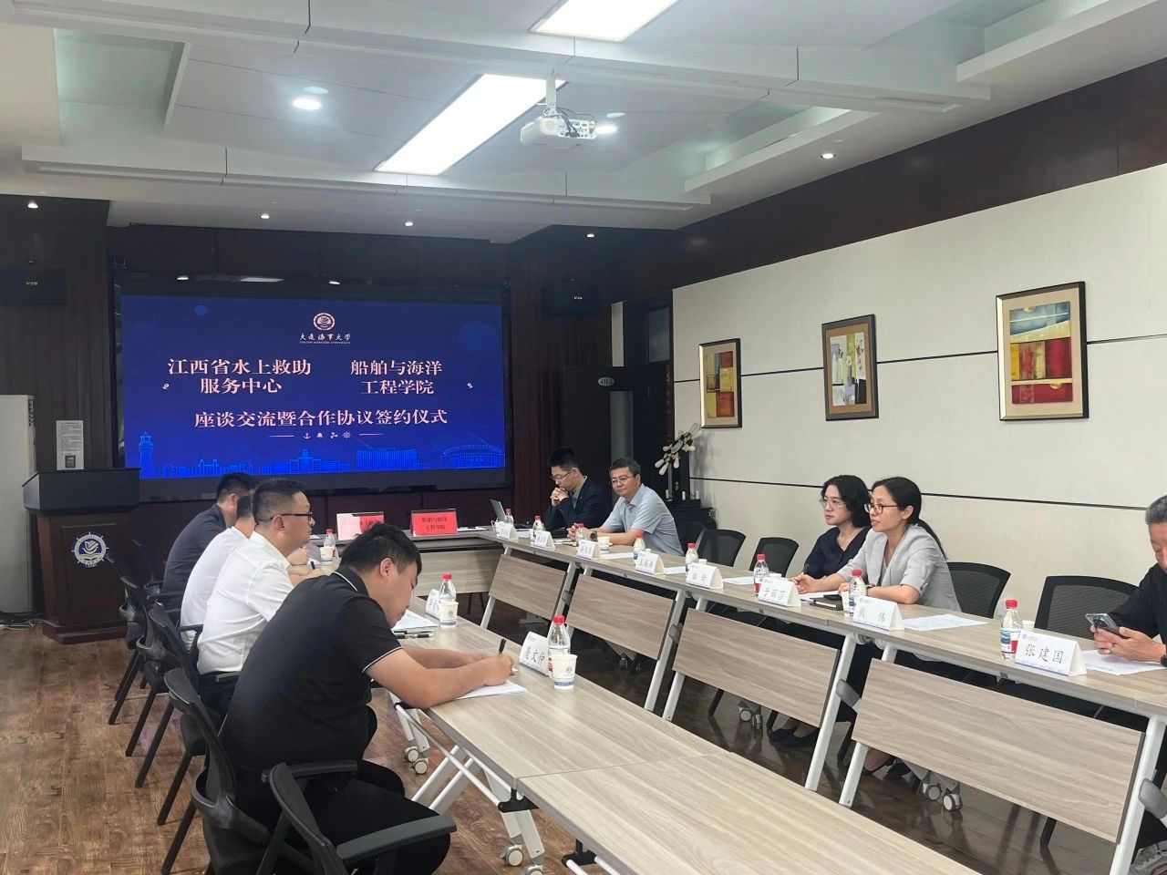 6�14日,江西省水上救助服务中心党委书记、主任李青峰一行来访我院并签署合作协议,江西省水上救助服务中心党委委员、副主任叶卫星,船舶与海洋工程学院党委书记于丽莎、副院长田昕、韩吉昂、侯远杭、党委副书记兼副院长王文伟等参加签约仪式并座谈交流�