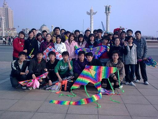 物流工程一班和土木工程二班的同学在星海广场共同开展“放飞风筝,放飞理想”活动。