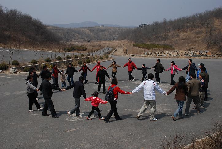 早上八点,乘坐大巴准时出发。一路上,大家都兴致勃勃,围绕植树的话题展开讨论,一些老师分享了以前植树的经验。经过大约一个小时的车程,到达了林地。负责人向老师们介绍植树的具体流程和注意事项后,老师们便迫不及待地行动起来,挖坑、下苗、填土、浇水。之后将写着自己寄语的小木牌挂在自己种植的小树上。每一位老师都很兴奋,纷纷和自己种植的小树苗合影留念。植树活动后,大家又乘车来到此次活动的第二站,东沟五坊民俗文化村。用传统工艺加工农产品的“东沟五坊”闻名遐迩,在这里大家了解了豆腐、香油、白酒、粉条、玉米面等农产品的制作工艺。下午,我们在小黑山山脚下进行了几项拓展活动之后,大家攀爬了小黑山。虽然山势陡峭,但无法阻挡老师们前进的脚步。